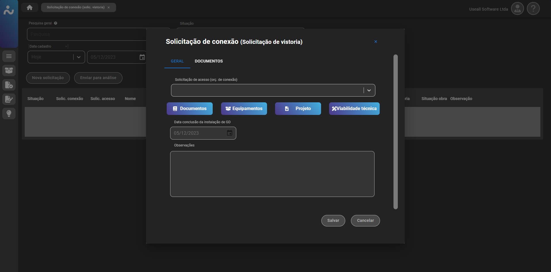 A Solicitação de Vistoria é a etapa do processo que gerencia o cadastro e envio das solicitações de vistoria, para o sistema de geração distribuída.